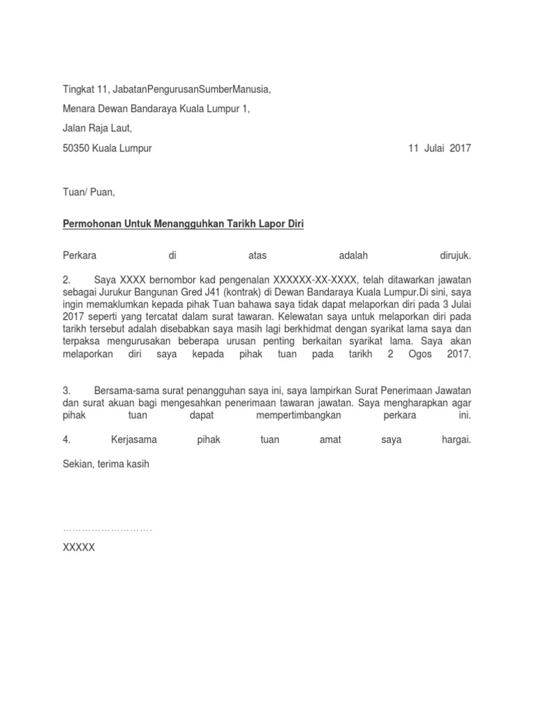 Contoh Surat Penangguhan Lapor Diri Pdf